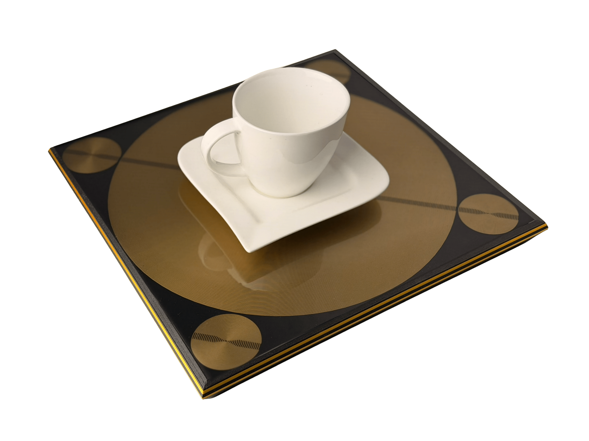 Stellen Sie einfach Ihr Wasser, welches Sie trinken oder was Sie zum Kochen verwenden möchten, auf diesen Untersetzer. Einige Minuten genügen bereits, um diesem Wasser andere Eigenschaften zu verleihen. Das funktioniert selbstverständlich auch mit natürlichen Lebensmitteln, die ja oft zum großen Teil aus Wasser bestehen.