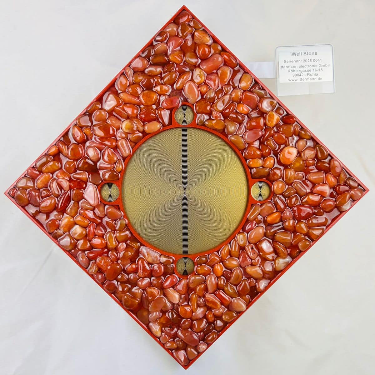 Der iWell Stone Karneol Raumharmonisierer, quadratisch 25 cm (Kantenlänge), Unikat 01 kann in einzigartigerweise Raumluft harmonisieren. Möglich wird das durch die Kombination von außergewöhnlichen Komponenten, die zusammen eine kraftvolle Einheit bilden.